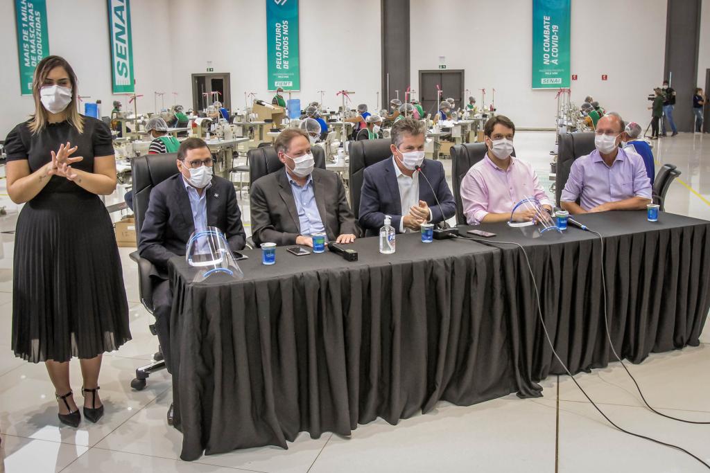 O Governo do Estado e o Serviço Nacional de Aprendizagem em Mato Grosso (Senai-MT) firmaram uma parceria para a produção de 5 milhões de máscaras hospitalares, com a entrega de 1 milhão de máscaras por mês.