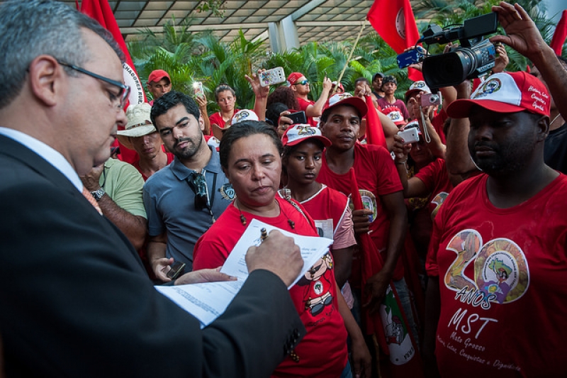 O secretário-chefe da Casa Civil, Paulo Taques, recebeu membros do Movimento dos Trabalhadores Sem Terra (MST) na tarde da quarta-feira (12.08), no Palácio Paiaguás, em Cuiabá. Após uma manifestação pacÃfica realizada na portaria principal do Palácio, uma comissão do MST se reuniu brevemente com o secretário Paulo Taques, que recebeu uma lista de reivindicações para encaminhá-la ao governador.