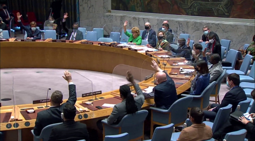 Na reunião desta tarde, o Conselho de Segurança aprovou a invocação de um mecanismo chamado Unidos pela Paz (Uniting for Peacem, em inglês), com base na Resolução 377 da Assembleia Geral, aprovada em 1950.