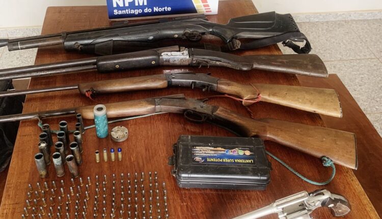Com o suspeito, foram encontradas três espingardas, um revólver e uma carabina e 189 munições
