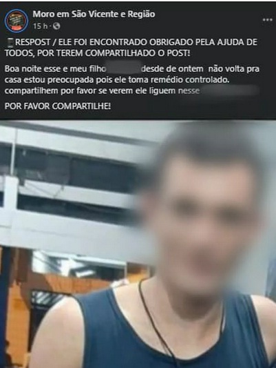 No entanto, ele não deu notícias, e os familiares passaram a divulgar imagens dele pedindo por informações de possíveis paradeiros por diversas páginas nas redes sociais. A mãe divulgou que o filho era usuário de remédios controlados e que nunca havia ficado fora de casa sem dar notícia antes.
