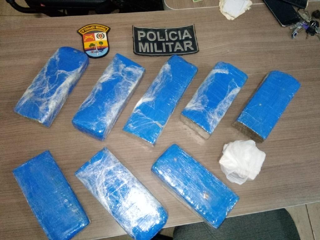 Na mochila do suspeito, os policiais apreenderam nove tabletes de maconha e pasta base de cocaína (cerca de 4 kg de droga). O homem foi conduzido em flagrante para a Delegacia de Polícia Civil.