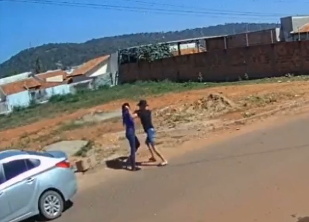 Em imagens de uma câmera de segurança, é possível ver que o agressor e a vítima estavam conversando do lado de fora de uma residência, quando em um dado momento, o homem saca uma faca e desfere diversos golpes na mulher.