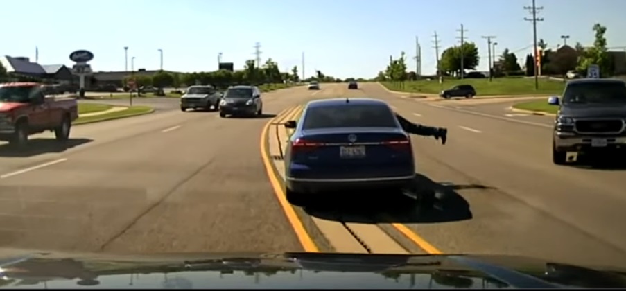 O caso aconteceu na semana passada em uma avenida dos Estados Unidos e foi gravado pela polÃcia, que vinha logo atrás. (vÃdeo abaixo)