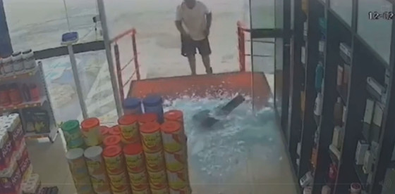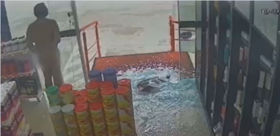 Homem quebra vidraça, tira roupa e entra em farmácia para se pesar totalmente nu. Vídeo