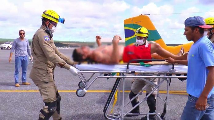 Um avião agrícola da fazenda levou a vítima até o aeroporto do município e lá, uma equipe do Corpo de Bombeiros efetuou os primeiros socorros e o encaminhou para o hospital em estado grave, porém ele estava consciente.Â