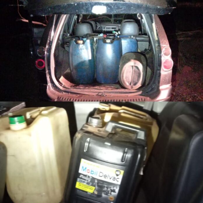 No local, os policiais encontraram dois homens que tinham sido detidos pelos seguranças. Os homens confirmaram o furto do combustível e disseram que seriam pagos por uma pessoa, que compraria o produto por um preço abaixo do praticado no mercado.