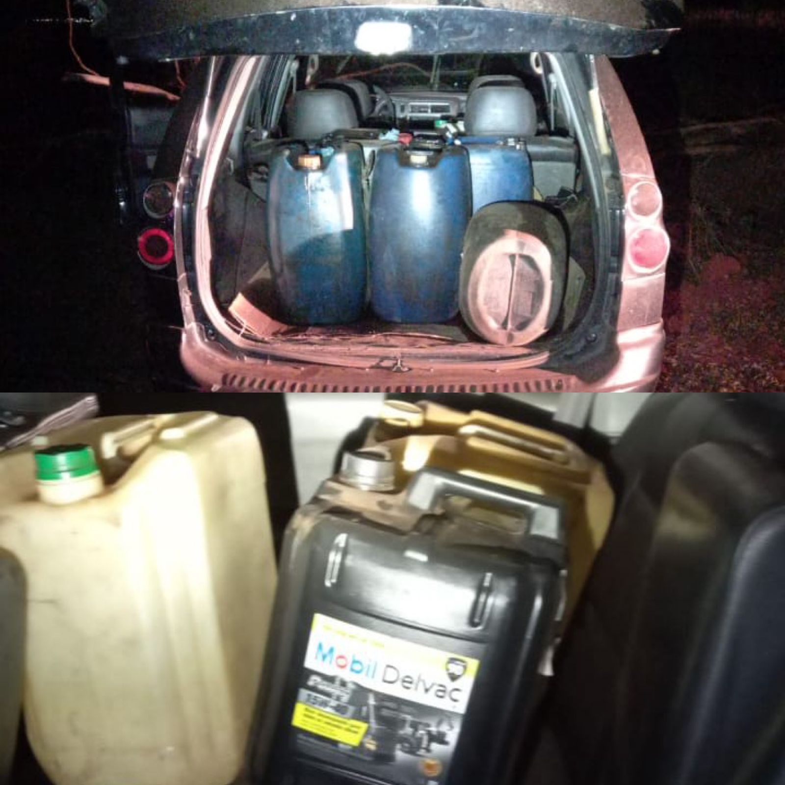 Os suspeitos ainda afirmaram que outros dois suspeitos tinham fugido com o veículo Pajero e com o material furtado. Em buscas pela região, os policiais localizaram a caminhonete e encontraram diversos galões de combustível.