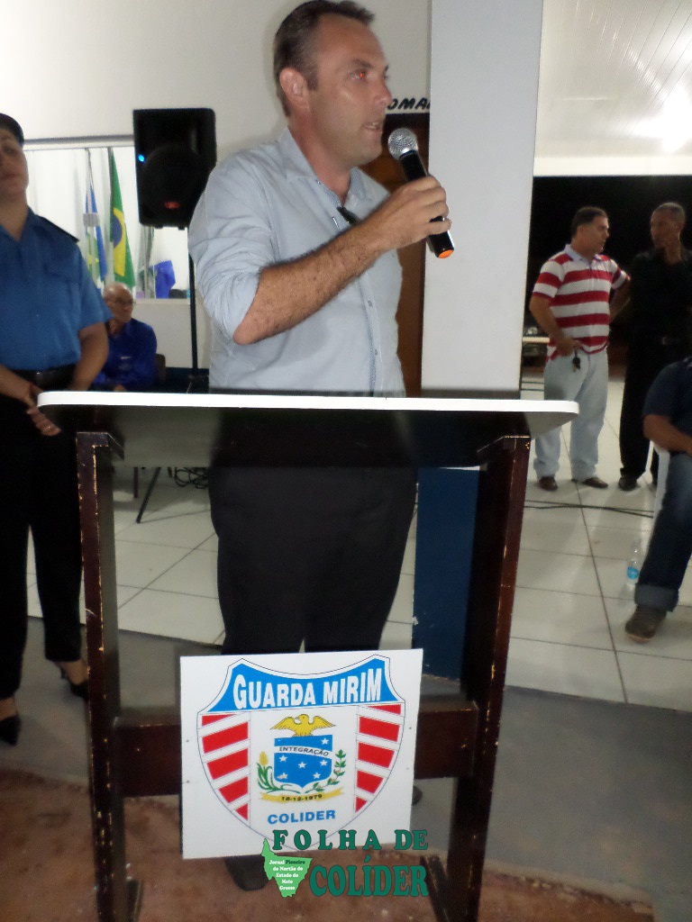 Em sua fala Leandro Schardong lembrou que quando aceitou a Presidência da Guarda Mirim disse que assumiria se Assis fosse seu  Vice-presidente e continuasse frente ao Projeto de Construção da Sede, pois estava ele na época muito compromissado fora  do municÃpio, além disso é conhecedor da seriedade do trabalho e determinação de Assis, esse que ao fazer uso da fala chamou ao seu lado o seu amigo Dr. Castilho, funcionário aposentado do TRT, por ter sido ele quem o incentivou a enviar projeto de construção ao Dr. Angelo Cestari, agradecendo-o  pela brilhante ideia que já gerou excelentes resultados:  a sede da GM, um investimento de R$ 345.108,40 feito pelo Comitê, prestando ele naquele instante  aos presentes as contas  de cada valor recebido.
