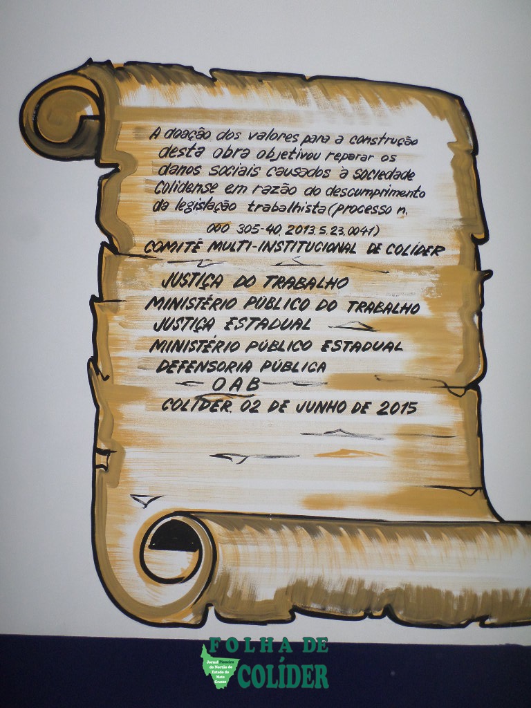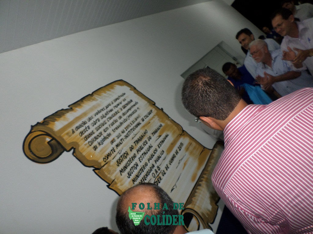 O Comitê Multi-institucional do Sistema Judicial de Colider, envolvendo Promotoria, Defensoria Pública, OAB e Justiça do Trabalho 23ª Região, através do Dr. Ângelo Cestari  Juiz da Vara do trabalho e o Presidente do TRT, Desembargador Edson Bueno de Souza;  do Dr. Washington Eduardo Borrére e  Drª. Ana Carolina Rodrigues Alves Fernandes, da Promotoria de Justiça mais uma vez compareceu para a inauguração de parte da obra da construção da sede da Guarda Mirim de Colider, desta vez realizando o sonho da Cozinha Industrial,  num amplo espaço, com dispensa e dentro das exigências da vigilância sanitária, construÃda com recurso financeiro do referido Comitê, totalizando o valor de R$  R$ 345.108,40 o  recurso já  investido.