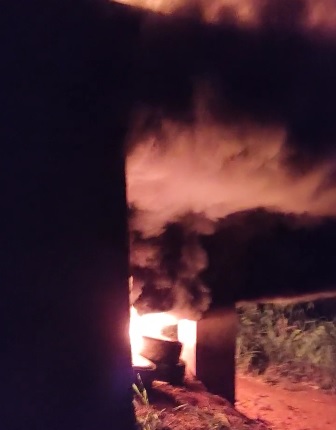 A ponte acabou sendo incendiada na noite de ontem (8), o Corpo de Bombeiros esteve no local para conter as chamas.