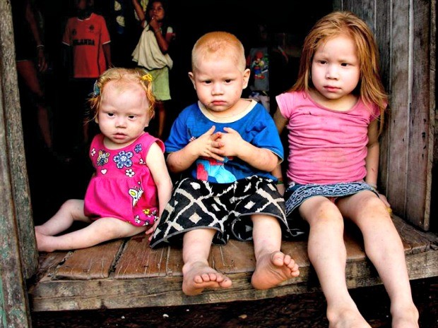 Na Aldeia Nova Mudança, localizada na cidade de Santa Rosa do Purus (AC), a 300 km da capital Rio Branco, três crianças da etnia Kaxinawá destoam do restante da comunidade. De uma famÃlia de 8 irmãos, Vanessa, de 5 anos, Orlando, de 3, e a pequena Eleiana, de 1 ano, foram os únicos que nasceram com a pele clara, cabelos loiros e olhos castanhos.
