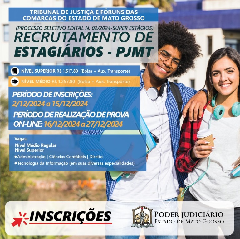 Início COMUNIDADE EM PAUTA INSCRIÇÃO GRATUITA: Poder Judiciário MT abre seleção para estagiários de nível médio...