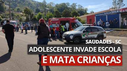 Três crianças e duas funcionárias de uma escola infantil de Saudades, no Oeste de Santa Catarina, morreram após um ataque a faca nesta terça-feira (4). O assassino, um jovem de 18 anos, deu golpes contra o próprio corpo e foi levado em estado gravíssimo para um hospital da região após o crime.