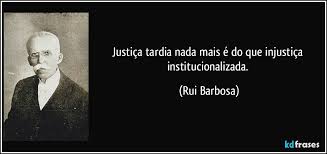 DeverÃamos ter estruturas capazes de dirimir rapidamente pequenas questões e um sistema judicial moderno capaz de responder à s expectativas das partes que chegam à litigância. Quem peticiona, a não ser que de ma fé, tem o desejo de obter a decisão no menor tempo possÃvel. Processos que tramitam por 10 ou 15 anos são pendências que ocupam larga parcela da vida profissional útil do seu autor ou acusado. Via de regra, perdem o objeto em razão da periclitação de provas e do simples movimento dinâmico das coisas e da sociedade. Em vez da justiça, podem conduzir à injustiça institucionalizada apontada por Ruy, há pelo menos um século…