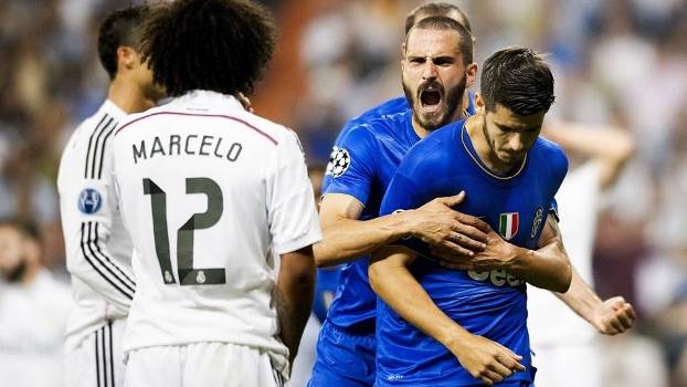 Com um gol do atacante Morata, revelado no Real Madrid, a Juventus arrancou o empate por 1 a 1 com a equipe espanhola, na tarde desta quarta-feira (13), em Madri, e fará a final da Liga dos Campeões contra o Barcelona. Como havia vencido o duelo de ida das semifinais por 2 a 1, em Turim, a equipe italiana assegurou a sua classificação à decisão da competição europeia, que será disputada no estádio OlÃmpico de  Berlim, no próximo dia 6 de junho.           Com o resultado, a Juventus, duas vezes campeã europeia, em 1985 e 1996, e finalista em sete ocasiões, volta a disputar a final do principal torneio europeu depois de 12 anos da sua última presença, quando perdeu a decisão para o Milan em 2003. O JOGO               Com a vantagem adquirida na partida de ida, a Juventus optou por tentar cadenciar a partida, principalmente, no primeiro tempo, para evitar a pressão do Real Madrid. Porém, mesmo com mais posse de bola, a equipe de Turim pouco produziu no campo ofensivo e, de quebra, foi refém dos rápidos contra-ataques do time espanhol.             Somente antes do intervalo, os donos da casa realizaram 11 finalizações contra apenas duas dos visitantes, segundo a Uefa. E, se não fosse a boa atuação do goleiro Buffon, o Real poderia ter ido para os vestiários com um placar bem maior que 1 a 0.             O goleiro italiano fez belas defesas em chute de Bale, aos 20min, e na cabeçada de Benzema, que voltava ao time espanhol, aos 30min. O camisa 1 da Juventus só não conseguiu evitar a cobrança de pênalti de Cristiano Ronaldo, que chutou no meio do gol e abriu o placar da partida ainda aos 23min.               No entanto, o lance que culminou com o décimo gol do atacante português na competição, igualando-se a Lionel Messi, foi polêmico. O árbitro Jonas Eriksson errou a marcar a penalidade do zagueiro Chiellini no colombiano James RodrÃguez, que cavou a falta dentro da grande área italiana.              Decisivo na partida de ida, o argentino Tévez pouco participou do jogo também no segundo tempo. Mesmo assim, o time italiano conseguiu criar boas chances no campo de ataque logo no reinÃcio da partida. E, após um rebote de uma jogada de bola parada, a Juventus chegou ao empate. Aos 11min, após toque de cabeça de Pogba, Morata ajeitou a bola quase na marca do pênalti e, livre, chutou forte, para empatar o jogo. O goleiro Casillas ainda tocou na bola antes de ser vazado.           Após o revés, o técnico Carlo Ancelotti promoveu a entrada do atacante Hernández, apelidado de “Chicharito”, no lugar de Benzema, cansado. Assim, o Real pressionou a equipe de Turim até os minutos finais. Mas, sem sucesso.           No fim do confronto, o goleiro Casillas ainda fez bela defesa e evitou gol certo de Pogba.