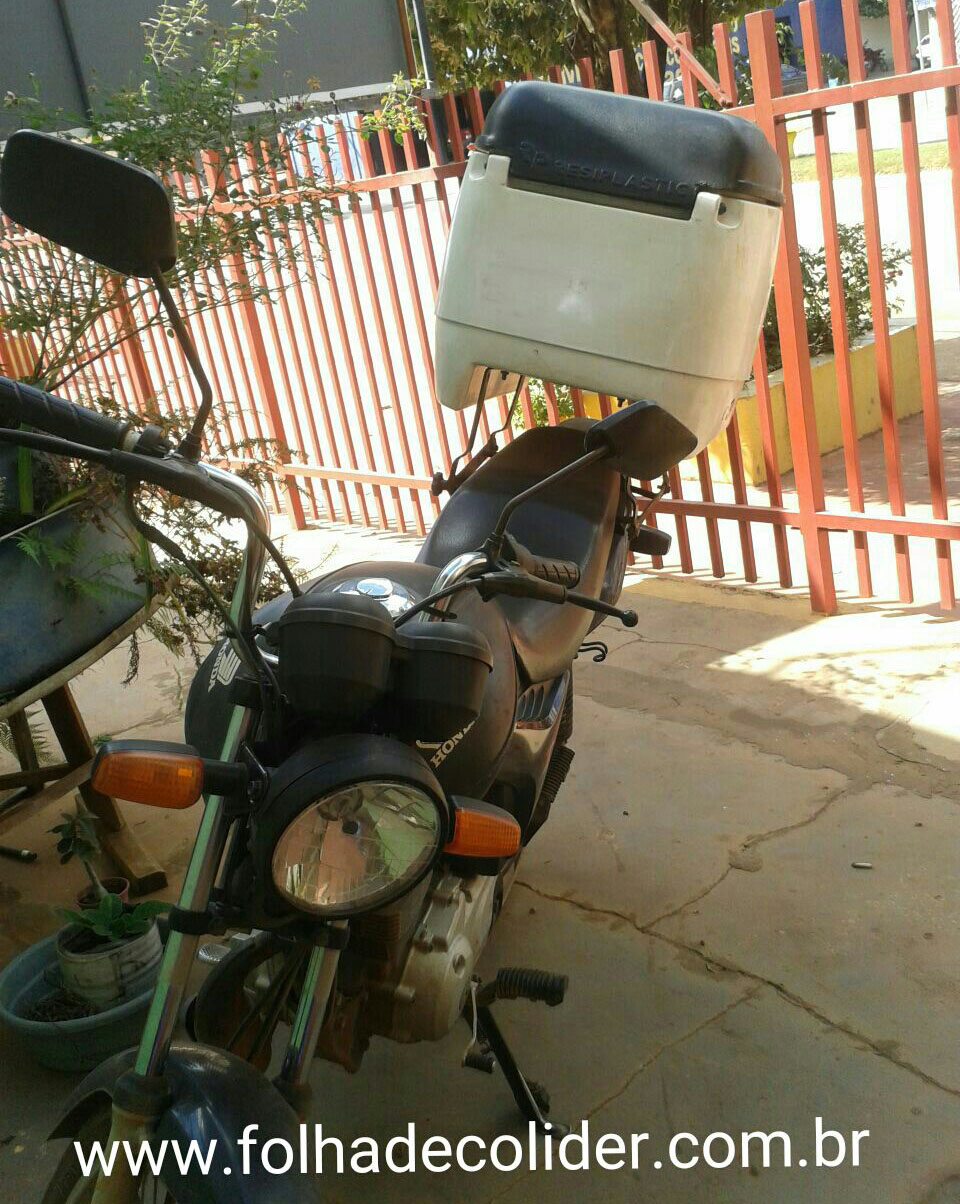 Na madrugada deste sábado (04) os amigos do alheio fizeram um apanhado pela cidade de Colider . Por volta da 01:h  da madrugada, na Avenida do Colonizador, mais precisamente nas dependências da LÃder Extintores, um elemento ainda não identificado desencaixou o portão que estava cadeado, entrou e roubou uma das  motos ali existentes, sendo levada uma moto Honda CG 125 Fan,KS 2011, preta, com um baú branco na garupa(moto de entregas), placa: NPJ-6623.