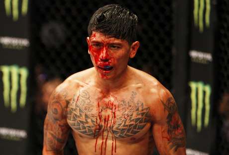 Jon Delos Reyes sofreu durante a luta e ficou com o rosto coberto de sangue, mas conseguiu vencer Roldan Sangcha-An