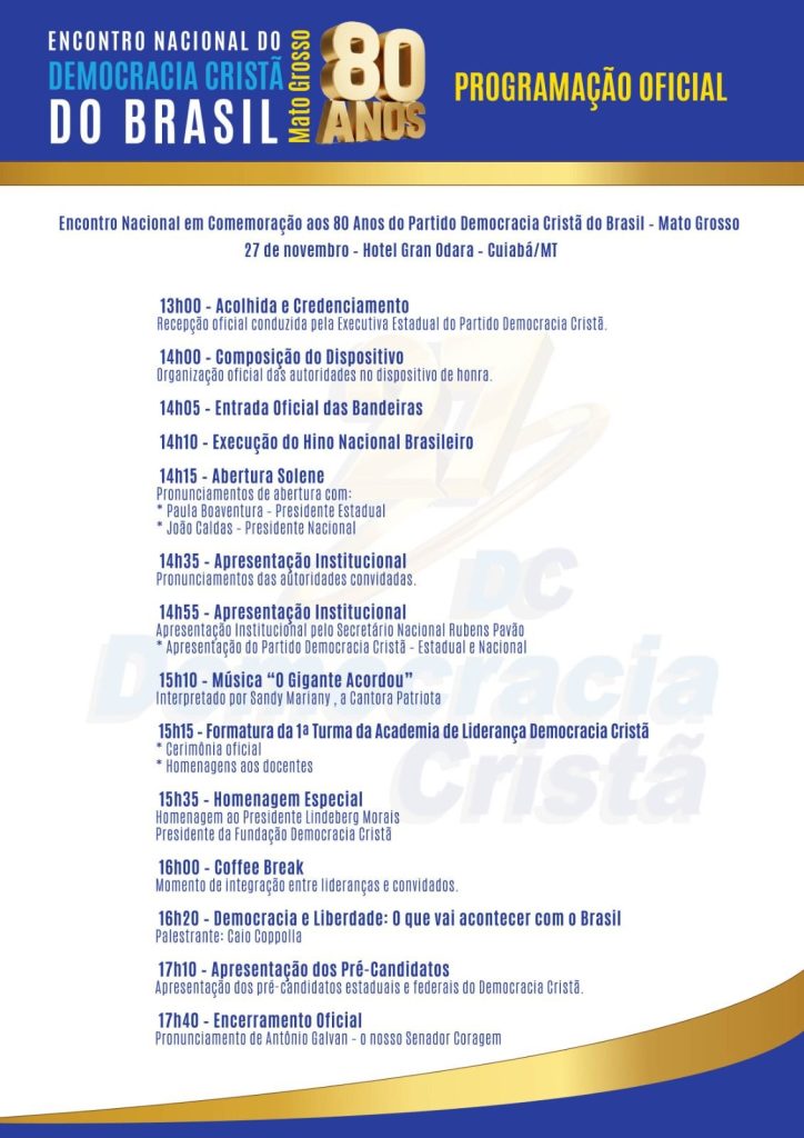 Essa grande conquista será celebrada no dia 27 de novembro de 2025, em Cuiabá, durante o Encontro Nacional em comemoração aos 80 anos da Democracia Cristã no Brasil — um evento que promete emoção, reconhecimento e inspiração para o futuro.