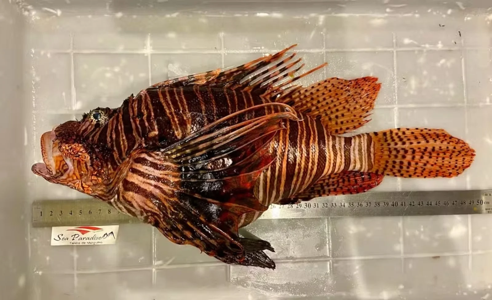O maior peixe-leão do mundo foi capturado no Parque Nacional Marinho de Fernando de Noronha no dia 27 de fevereiro. O espécime mede 49 centímetros, tamanho que ultrapassou os registros de recordes anteriores de Venezuela (45,7 cm) e Estados Unidos (47,4 cm).