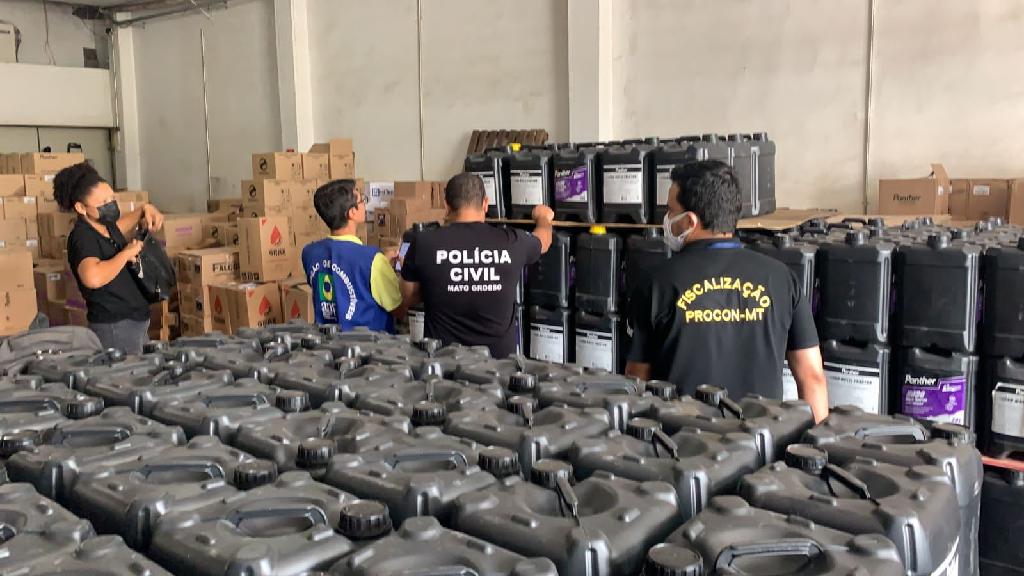 A força-tarefa esteve em duas grandes distribuidoras de óleo lubrificantes que forneciam o produto para todo o Estado de Mato Grosso, localizadas nos bairros Parque Ohara e Jardim Paulista, em Cuiabá. Na primeira distribuidora, foram apreendidos 16.456 mil litros de óleo lubrificante de duas marcas de origem clandestina e que não possuem informações exatas sobre quem são os seus fabricantes e nem número de registro válido na Agência Nacional do Petróleo – ANP.
