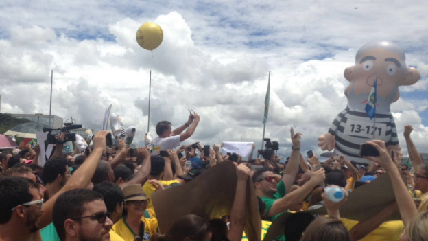 (Agência Brasil)“O grande ídolo da manifestação é o juiz Sérgio Moro. No momento, um dos carros de som passa pela catedral de Brasília. Ao microfone, um dos líderes do protesto pede um agradecimento especial a Jesus Cristo e que ele ilumine os trabalhos da PF (Polícia Federal), do MP (Ministério Público) e da Justiça”, informa a correspondente da BBC Brasil em Brasíia, Mariana Schreiber.