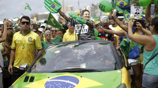 No Rio, a manifestação ocorre em Copacabana. Grande parte dos manifestantes usa verde e amarelo e carrega bandeiras do Brasil.
