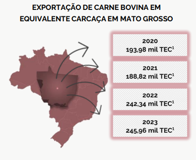 O volume total de carne exportado pelo estado no acumulado foi de 245,96 mil toneladas em equivalente de carcaça.