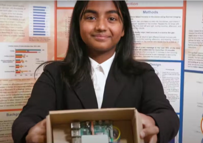 Shanya Gill é a menina que recebeu um prêmio científico por criar um sistema de alarme de incêndio mais barato e eficiente que os comuns. – Foto/ reprodução/Society for Science