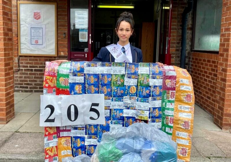 Alyssa passou o ano passado coletando sacos de salgadinhos descartados, no total, foram mais de 10 mil saquinhos, o que resultou em 205 cobertores.