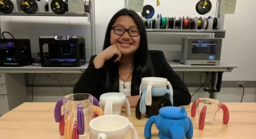 Há 10 anos a menina Lily inventou uma caneca para ajudar o avô com Parkinson. Hoje ela tem 21 anos e está milionária com a invenção. – Foto: StartupSquad