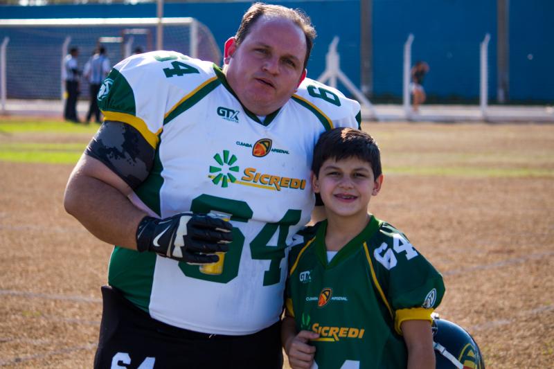 Moisés, NÃcolas e Lucas participaram de todos os sete jogos da temporada 2016 do Cuiabá Arsenal. Das cinco vitórias que levaram ao tÃtulo de bicampeão estadual de futebol americano e das duas vitórias pela Superliga Nacional, o campeonato brasileiro da modalidade. O pai como jogador e os filhos como apoio. NÃcolas e Lucas ainda não possuem idade para jogar pelo time principal, mas podem ser vistos em todos os jogos carregando água para os atletas que estão dentro de campo.