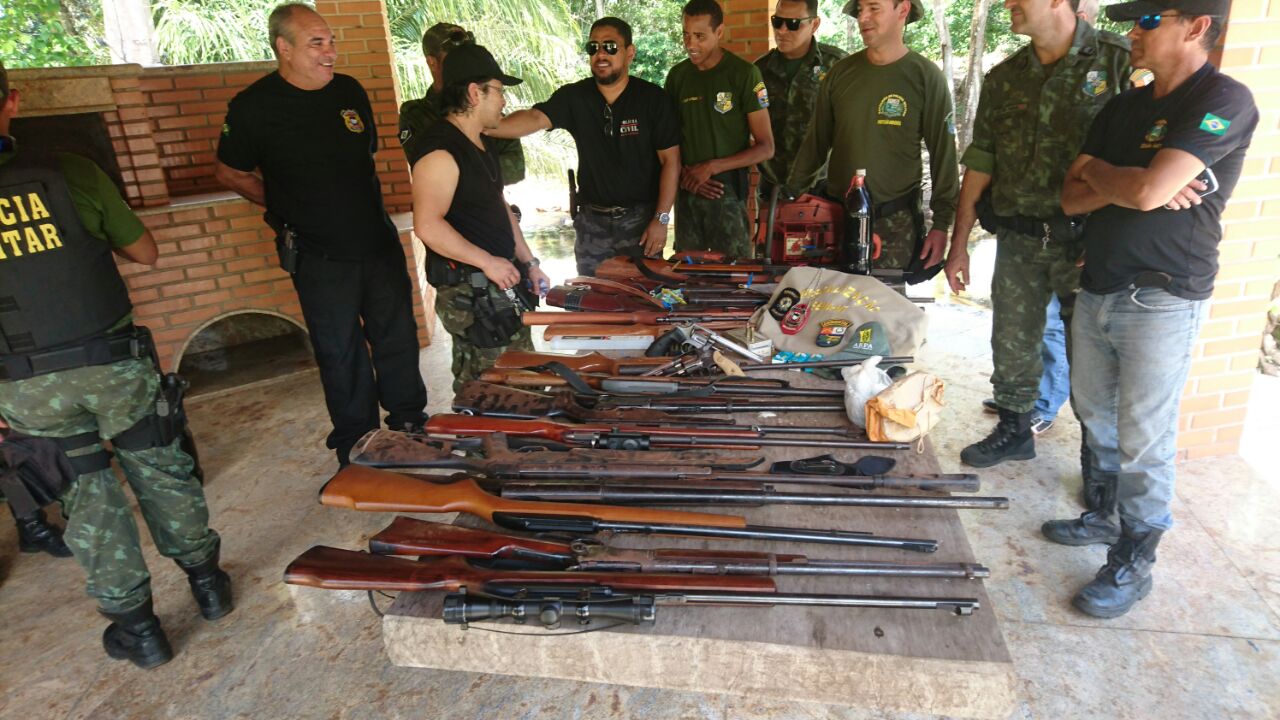 Dezoito armas de fogo preendidas na região de Vila Bela da SantÃssima Trindade(Foto PJC)