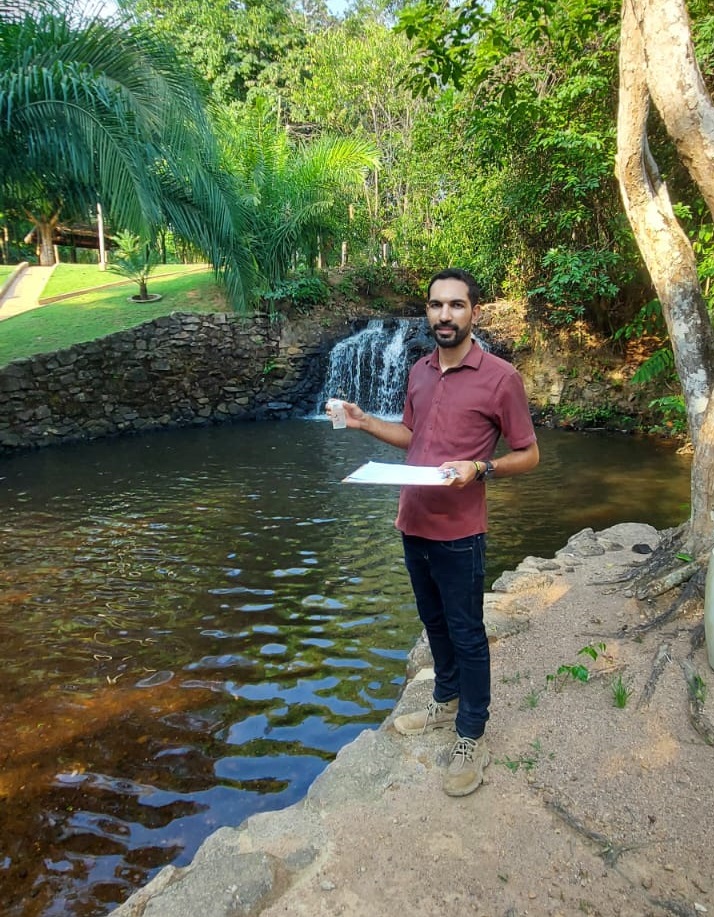 Eleil Mota, Vice-Presidente CBH Médio Teles Pires e Presidente Carapá Vivo colhe mostra na Cachoreira da Família em Colider