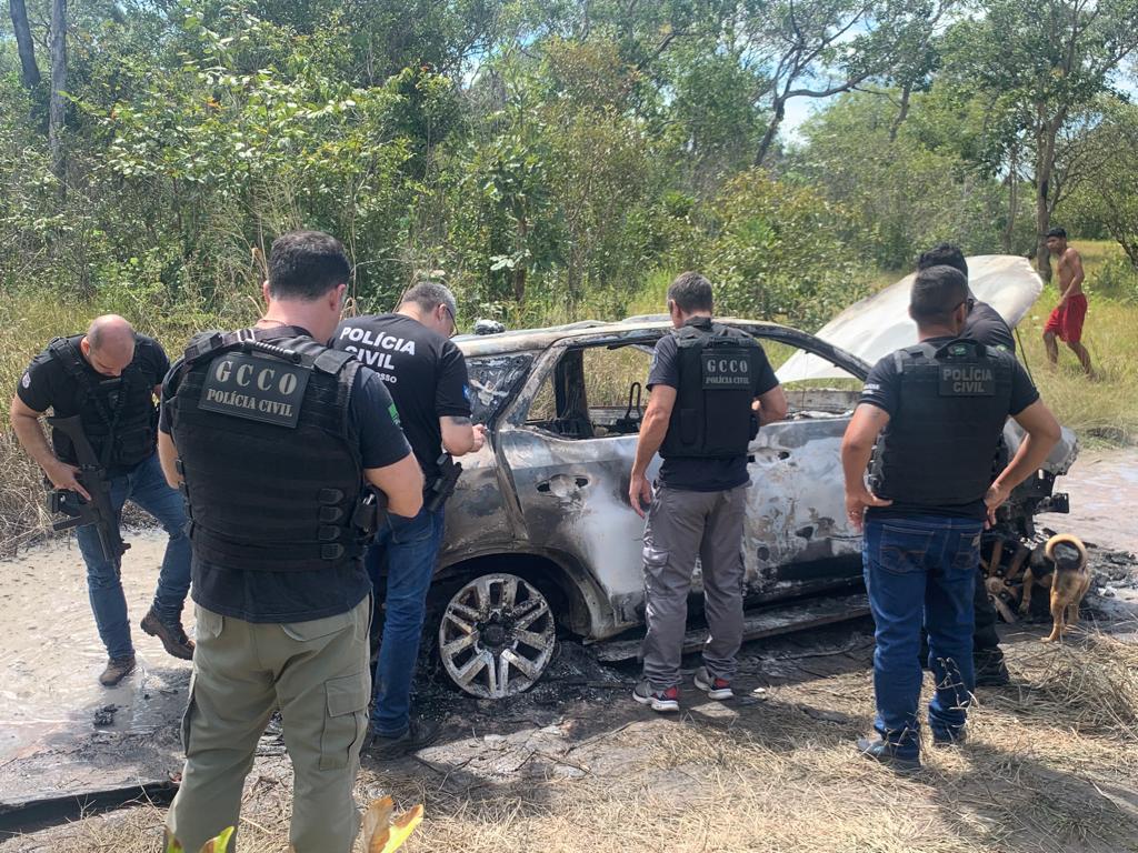 As Forças de Segurança de Mato Grosso seguem na região, com apoio de agentes do Tocantins, Pará, Goiás e Minas Gerais. Ao todo, 350 policiais atuam para localizar e prender os criminosos.