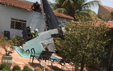 A casa onde o avião caiu fica na rua Noruega, ao lado do aeroporto Professor Eribelto Manoel Reino, onde a aeronave pousaria depois de sair de Tangará da Serra (MT). As imagens mostram que o bico do avião se chocou no quintal da residência. Parte da asa ficou dentro da piscina.