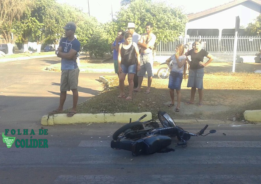 No cruzamento da Presidente Dutra com Avenida do Colonizador, frente à  Igreja Assembleia de Deus, em Colider, na tarde deste domingo(07), por volta das 16:12, um veÃculo GM Celta(branco),  placa NJH 8544, ColÃder/MT, conduzido por  Carlos Fernando Bortolazzi  Barbosa(23), indo pela Avenida do Colonizador sentido ao  Bairro Sagrada FamÃlia,na referida rotatória  colidiu com a motoneta Hero Puch, 50 cc( preta), conduzida por José Manoel Bueno Filho(68), que transitava pela Presidente Dutra  sentido ao Country Clube.