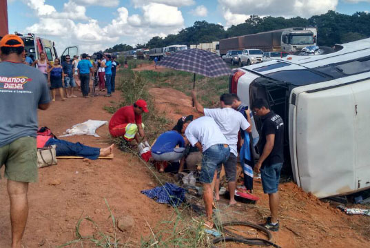 Um ônibus tombou por volta do meio-dia deste sábado (14) e deixou 40 pessoas feridas, sendo uma com gravidade, no km 231 na BR-364, a aproximadamente 30 km de Rondonópolis, municÃpio distante 218 km de Cuiabá. Havia 46 pessoas no coletivo. O acidente provocou congestionamento de 15 km nos dois sentidos da rodovia, que ficou fechada por aproximadamente duas horas.