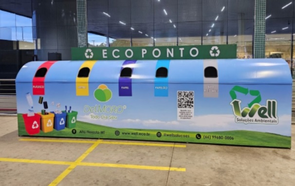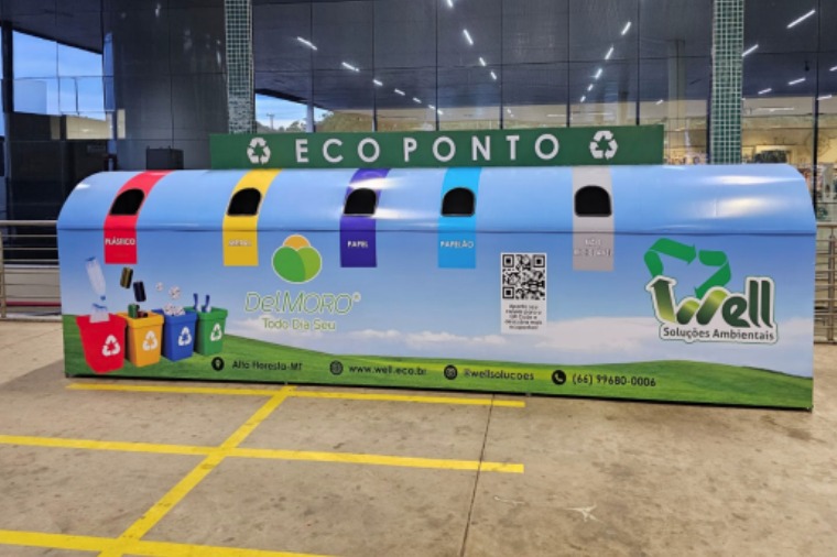 Em cumprimento a um Termo de Ajustamento de Conduta (TAC) pactuado com o Ministério Público do Estado de Mato Grosso, a empresa de gestão ambiental Well Soluções Ambientais instalou um ecoponto em um supermercado no centro da cidade de Alta Floresta (a 803km de Cuiabá), no fim do mês passado. Com seis metros de comprimento, o ecoponto possui seis baias para descarte de material reciclável (papel, plástico, metal, vidro, pilhas e baterias, e lâmpadas fluorescentes) com informações sobre o que pode ou não ser depositado em cada uma.
