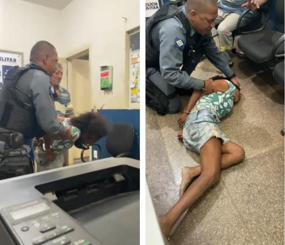Uma mulher teve um “surto” dentro da delegacia de Cáceres (225 km de Cuiabá), na madrugada desta terça-feira (07). Ela estava algemada, quando começou a gritar e bater os pés no chão, como se estivesse “endemoniada” e um policial militar orou, até ela se acalmar.