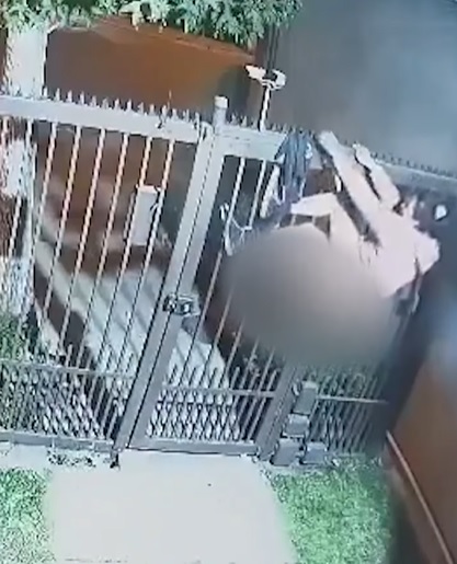 A mulher estava passando em frente à residência quando decidiu pular o portão, mas prendeu a calça nas pontas de ferro, ficou pendurada e seminua. As imagens, divulgadas no X (antigo Twitter), sugerem que ela estava sem calcinha.