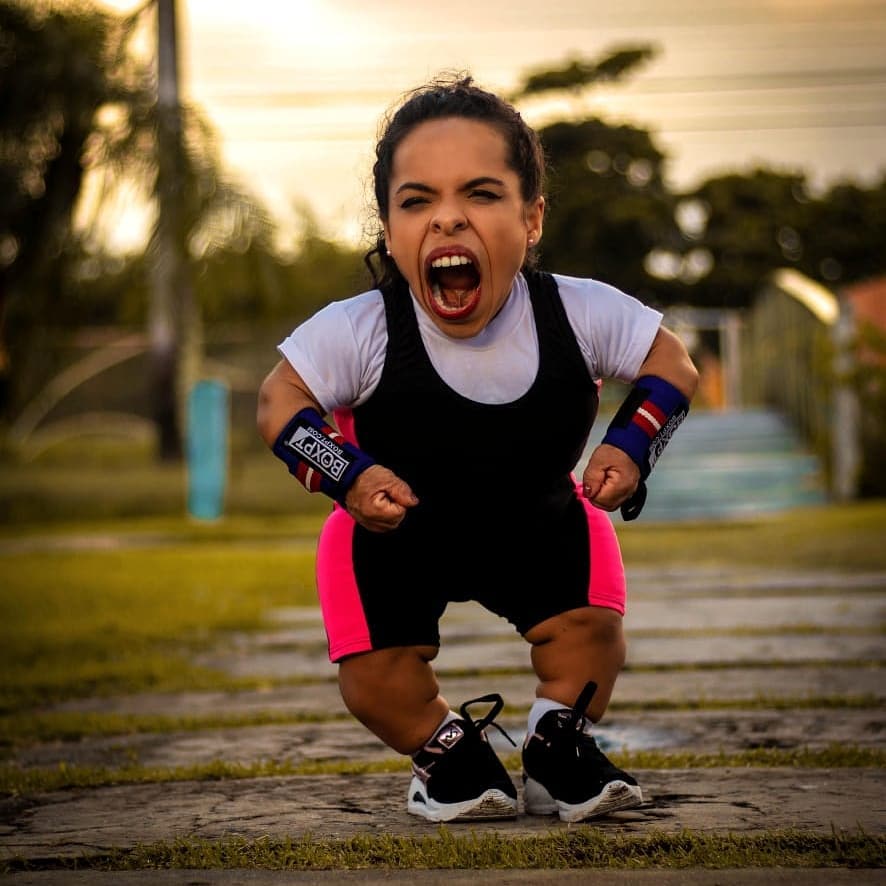 Camilla tem nanismo e retinose pigmentar, uma degeneração na retina que não possui cura, mas pode ser controlada por meio de tratamento. Para vocês terem ideia da força dessa mulher, Camillinha, como é carinhosamente chamada, pesa 21 quilos e conseguiu levantar 53 quilos!