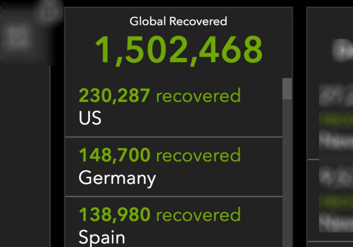 Já passa de 1,5 milhão o número de recuperados da covid no mundo. A marca de 1.502.468 foi batida esta madrugada, de acordo com o site da Universidade Johns Hokpins, dos EUA, que faz a atualização online.