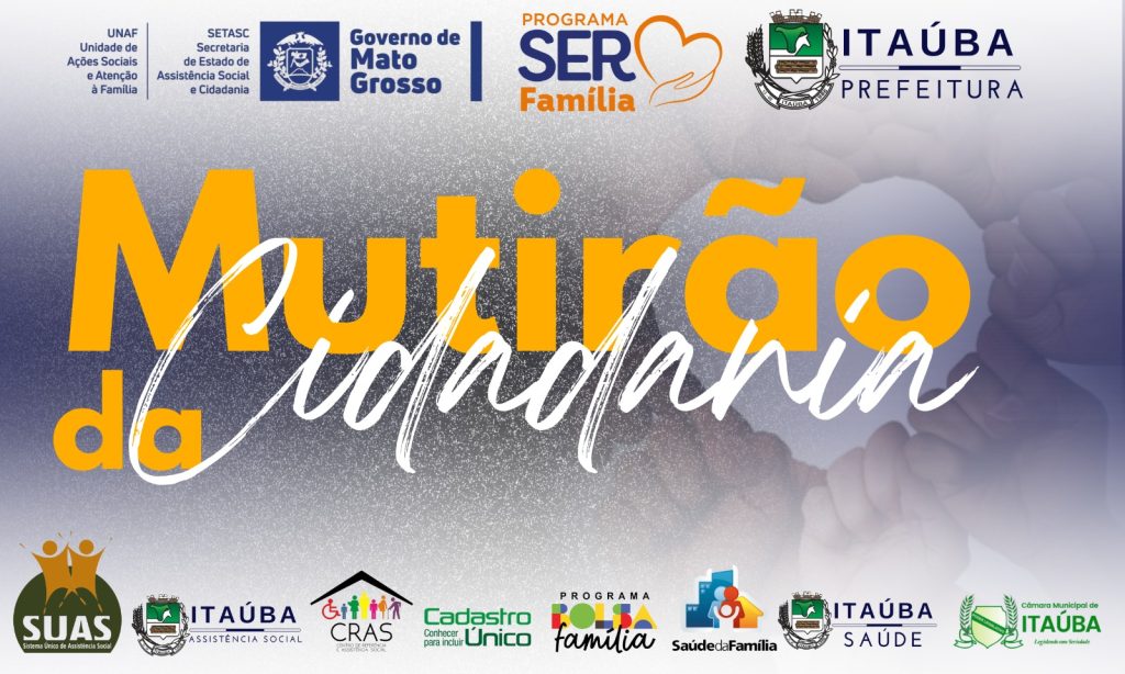O município de Itaúba receberá, no próximo dia 27 de maio, o Mutirão da Cidadania, uma grande ação social realizada pelo Governo do Estado de Mato Grosso, por meio da SETASC, UNAF e em parceria com a Secretaria Municipal de Assistência Social.