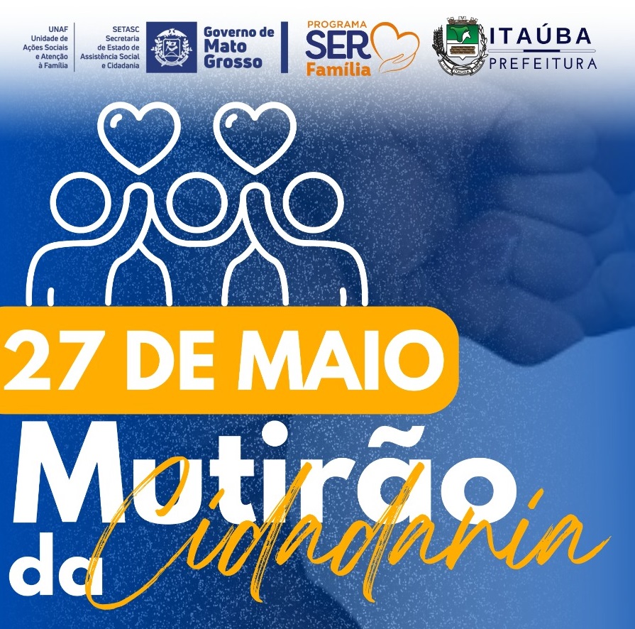 O município de Itaúba receberá, no próximo dia 27 de maio, o Mutirão da Cidadania, uma grande ação social realizada pelo Governo do Estado de Mato Grosso, por meio da SETASC, UNAF e em parceria com a Secretaria Municipal de Assistência Social.