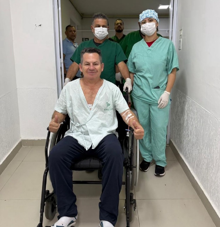 Na manhã desta segunda-feira (1), a primeira-dama do Estado, Virginia Mendes, compartilhou imagens do governador Mauro Mendes em recuperação. Em uma das fotos, ele aparece em pé ao lado de uma enfermeira; em outra, está sentado em uma cadeira de rodas, ainda sob observação médica. O governador de Mato Grosso, Mauro Mendes, sofreu uma queda na manhã de domingo (31) durante uma vistoria no Parque Novo Mato Grosso, em Cuiabá. Ele caiu de um palco e foi imediatamente encaminhado à Unidade de Terapia Intensiva (UTI) da Santa Casa para avaliação médica. A queda causou fraturas em quatro costelas.