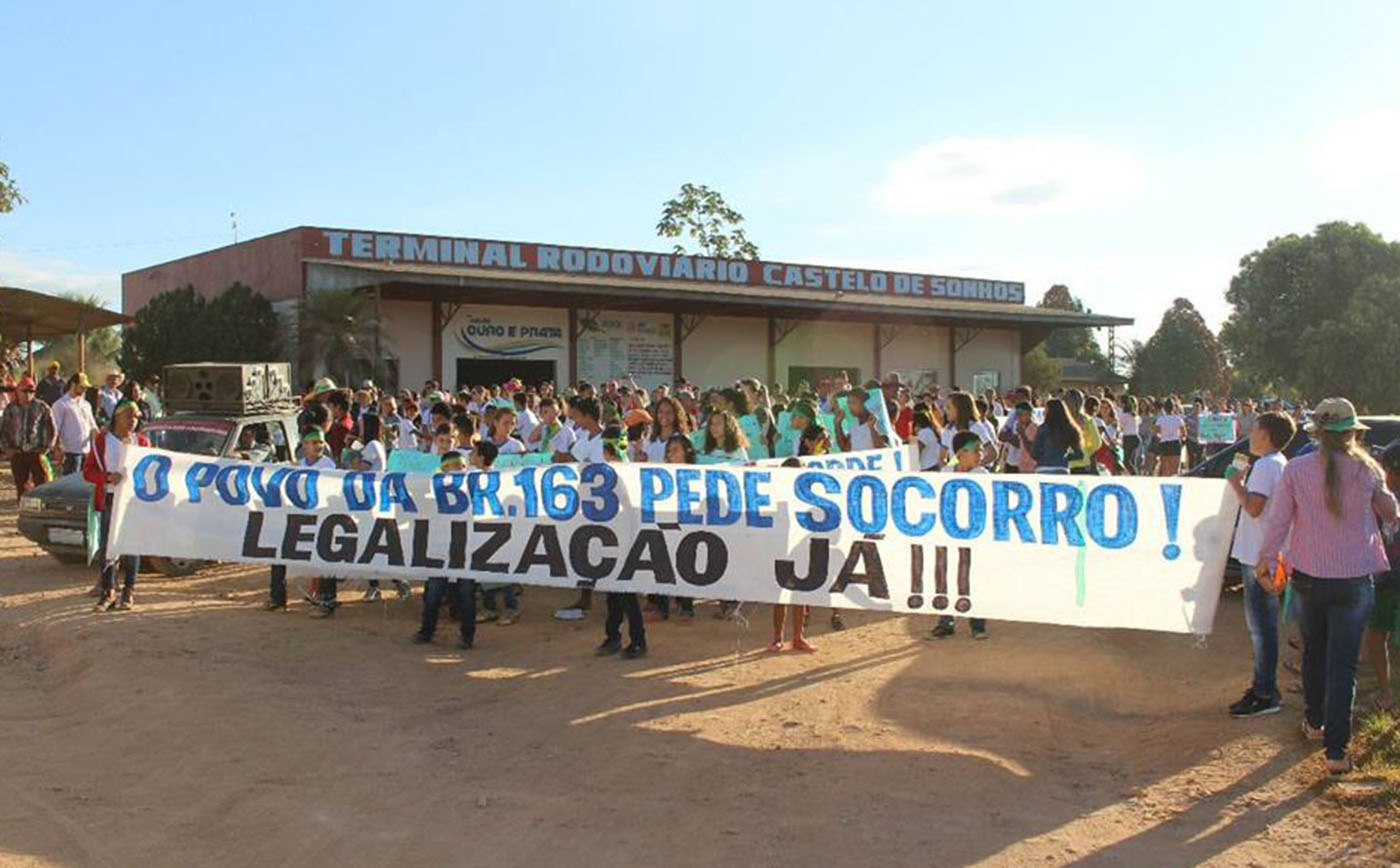 Com o lema: “NÃO ACEITAMOS MAIS A ILEGALIDADEâ€, habitantes de Castelo de Sonhos, Progresso, Cachoeira e de outras localidade daquela região do Estado do Pará em manifesto passivo bloqueiam  no 2º dia  a  BR 163, objetivando  chamar a atenção das autoridades competentes, ou seja, dos representantes polÃticos para as necessidades da região, com uma extensa pauta de reivindicação, dentre elas chamam a atenção para a  questão  da Regularização Fundiária, Desembargo de Ãreas Produtivas,  Redefinição da FLONA do jamanxin, Emancipação de Castelo de Sonhos e invasão de estrangeiros que tomam conta da Amazônia brasileira. “Nós somos capazes de cuidar da nossa Amazônia, fora Greenpeansâ€, diz uma das inúmeras faixas.