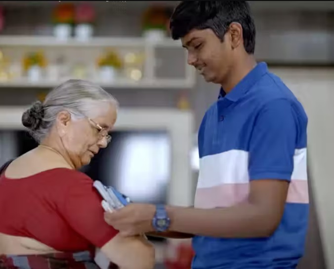 Chadalavada faz o teste do aparelho na avó – Foto: reprodução/Handout