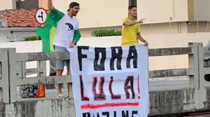 Nas imagens, aparecem três jovens, identificados como Emanuel Nery, Gabriel Barbosa e William Jales. Por meio das redes sociais, o trio tem veiculado uma série de imagens e vídeos de como tem sido a repercussão dos movimentos ‘Fora Lula’ no Nordeste.