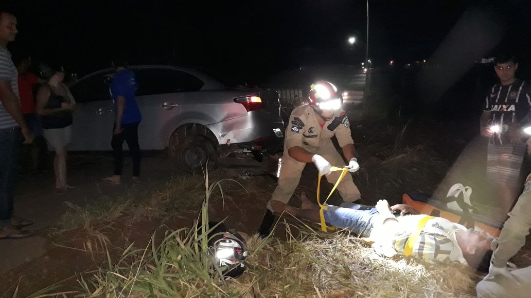 Conforme informações repassadas por populares, o veÃculo Siena saÃa da vicinal 1ª leste, acabou perdendo o controle e colheu o motociclista que seguia na rodovia sentido ao municÃpio de Carlinda.